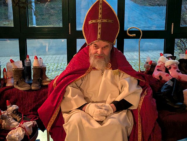 Teils ängstlich, teils neugierig warteten die Kinder, was nun passiert. Aber der bärtige Mann gab keinen Anlass für Ängste, er hatte ein gutes Wort für alle Kinder und überreichte jedem einen Stiefel, gefüllt mit Obst und Süßigkeiten. Alle strahlten vor Freude.