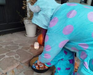 Einige Bewohner:innen verkleideten sich und ihre Kinder und machten die Nachbarschaft unsicher. Für die Kinder war das ein besonderes Erlebnis, besonders, da sie mit Süßigkeiten beschenkt wurden.